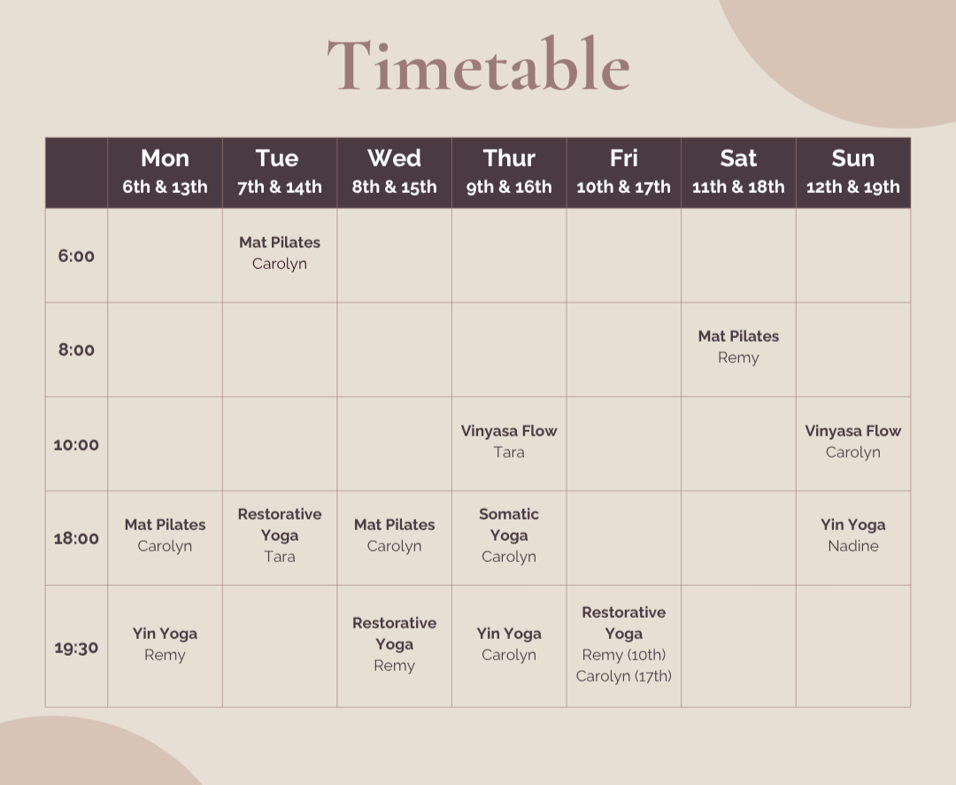 Classes are intentionally small to allow personal attention and a grounded studio atmosphere. Whether you are beginning Yoga or Mat Pilates for the first time, returning to movement after time away, or deepening an existing practice, you are welcome to join.